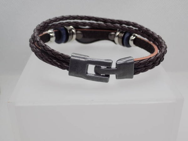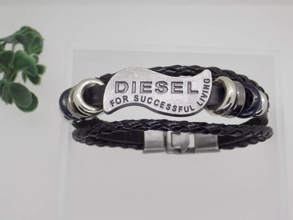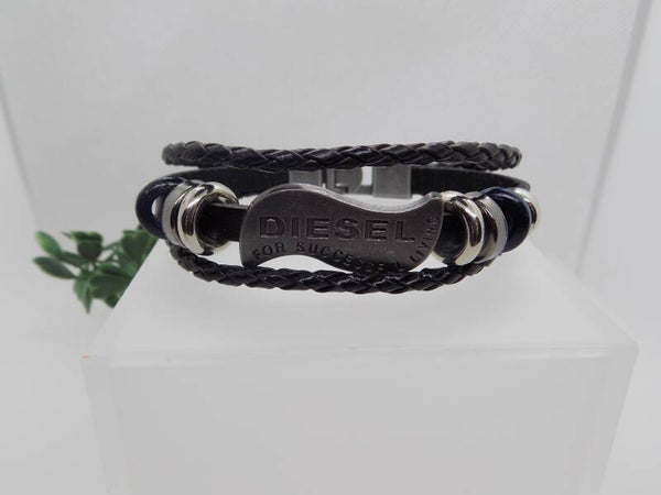 Diesel Herrenarmband Männerarmband Retro Vintage Edelstahl Leder schwarz braun 20cm