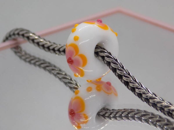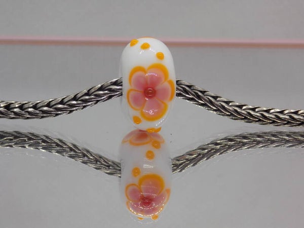 Nalu *Lanai Bead* Hawai Glasperle Charm weiß orange Blume Noppen